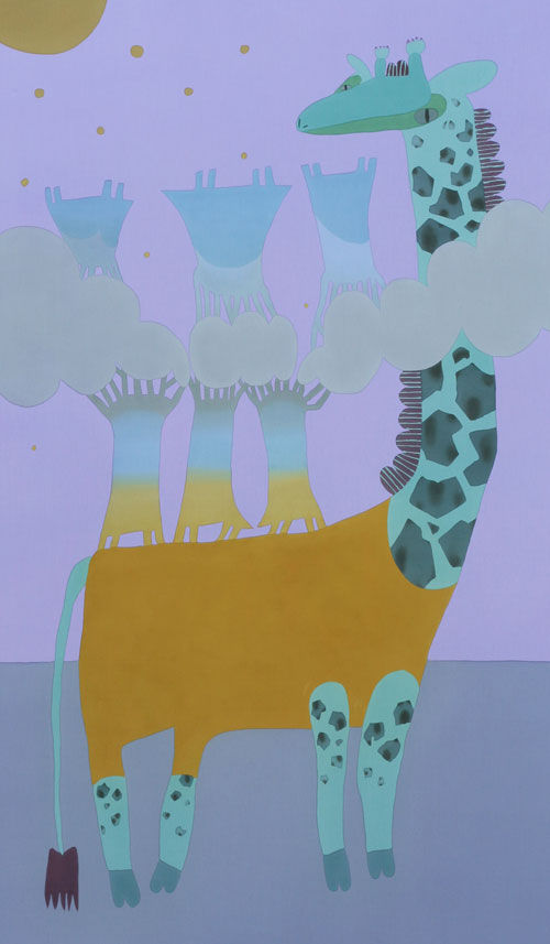 動物たちの日常を染料による色彩で表現しています。